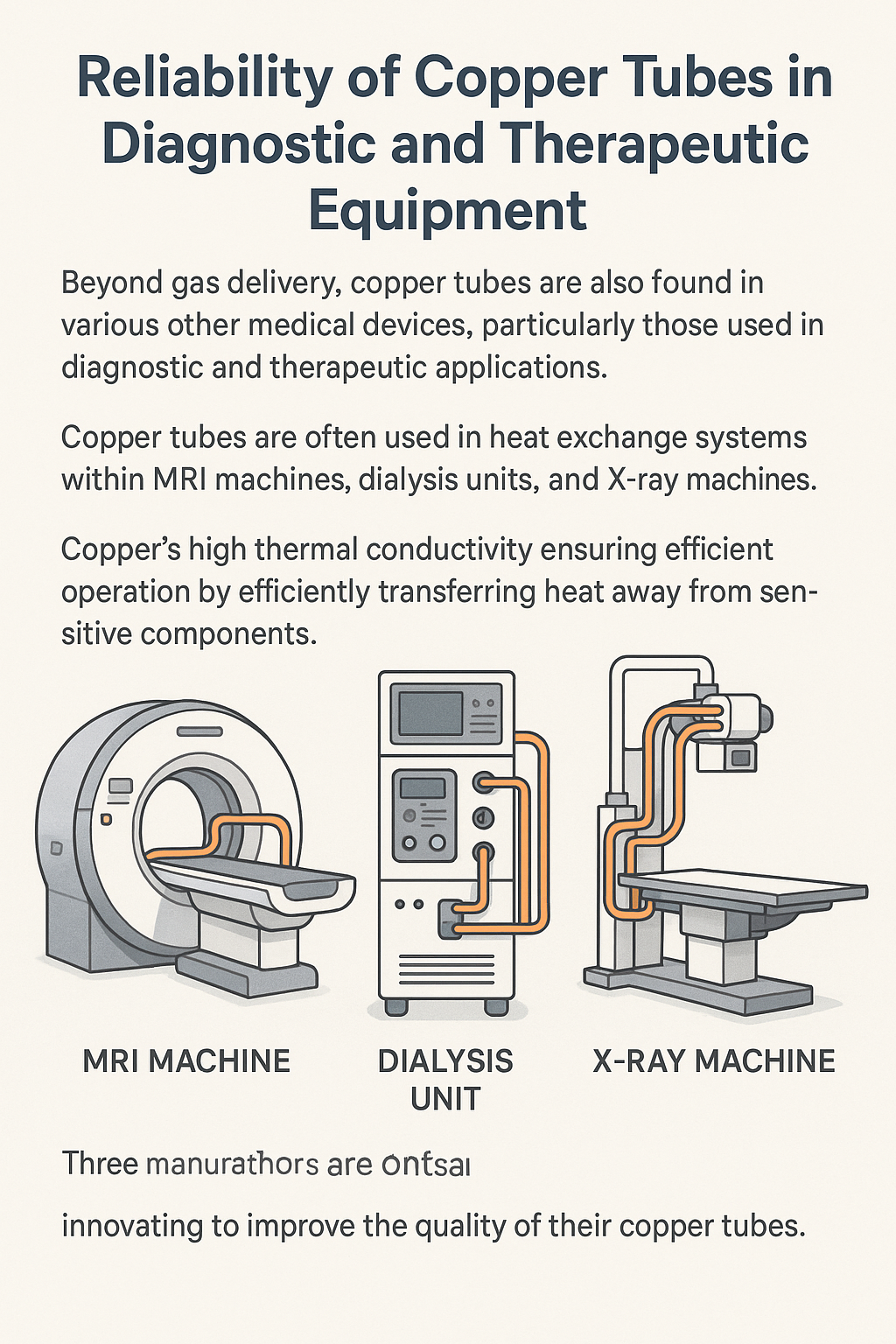 | 진단 장비 | 구리관은 MRI, X선 기계, 열 교환을 위한 투석 장치에 사용됩니다. | 높은 열전도율은 효율적인 열 전달을 보장하여 장비의 성능을 향상시킵니다. |