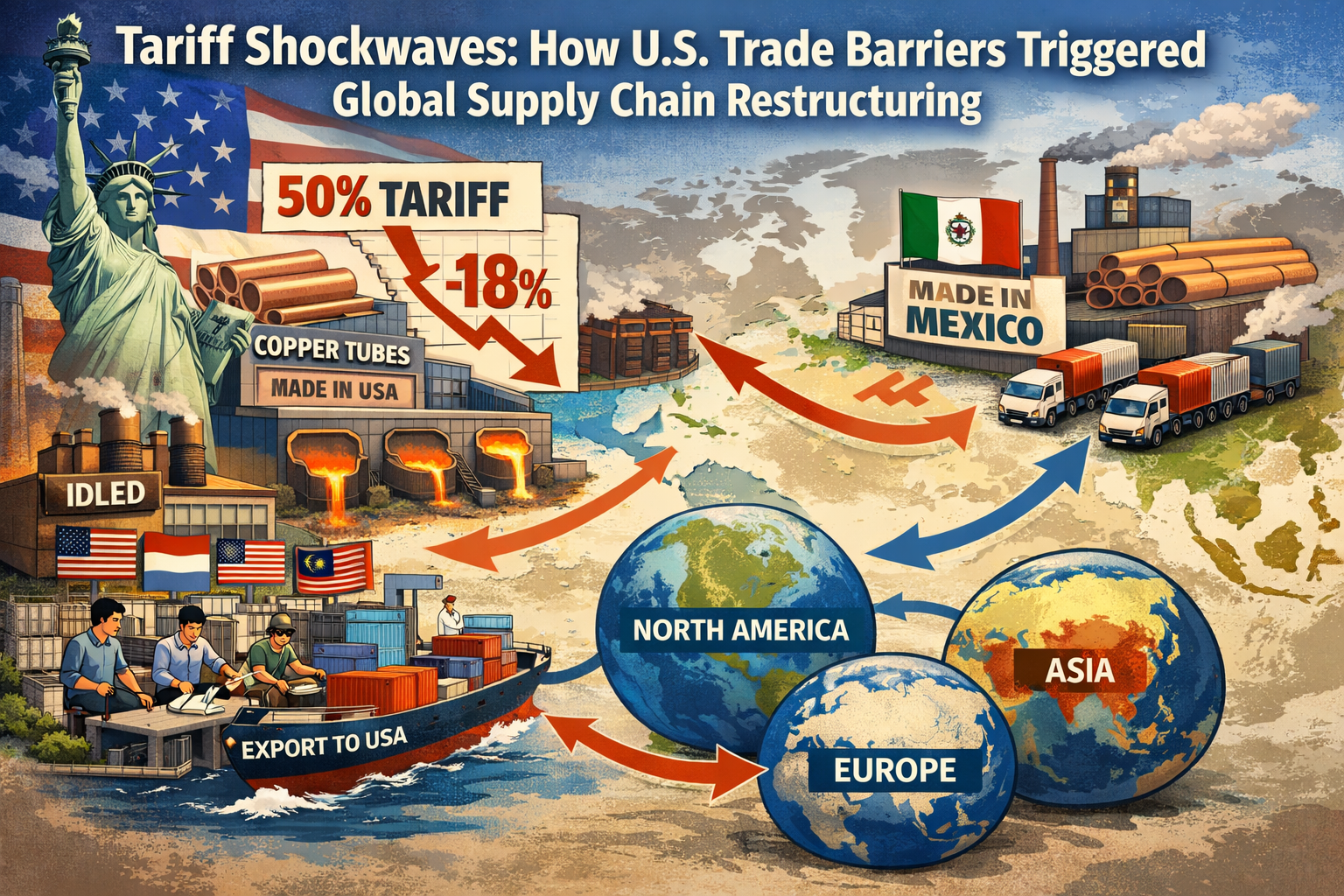부제: 미국이 구리관에 50% 관세를 부과해 글로벌 무역망 구조조정이 촉발됐을 때, 어떻게 동남아시아와 멕시코의 생산능력이 1년 안에 46.3%나 급증했을까? 이러한 정책 중심의 공급망 마이그레이션은 구리 튜브의 글로벌 가치 분포 지도를 다시 그리고 있습니다.