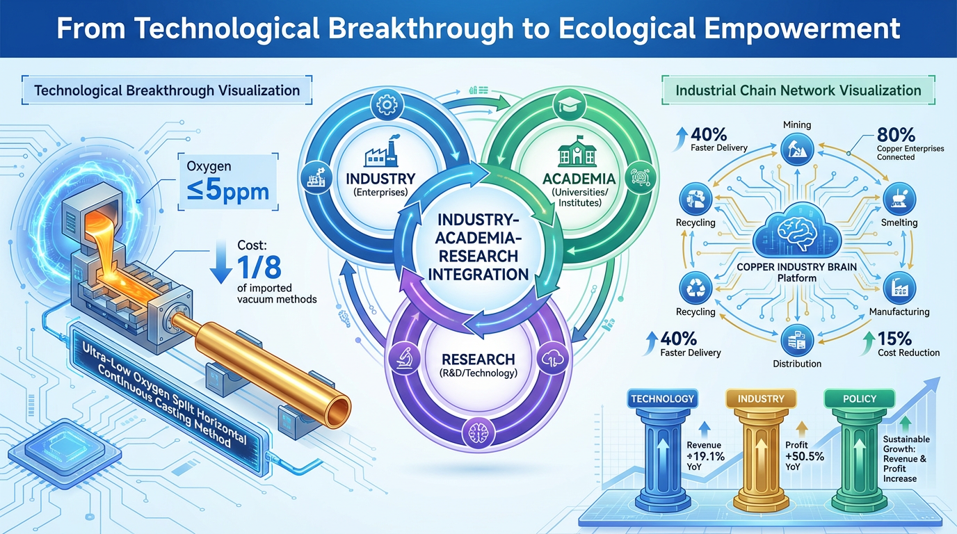 협업 범위가 체인 전체로 확대되고 있습니다. 장시성 구리 기업은 시 내 구리 기업의 80%를 연결하는 '구리 산업 브레인'을 구축하여 빅데이터 분석을 통해 용량 공유 및 주문 조정을 가능하게 했습니다. 이 플랫폼 접근 방식을 통해 중소기업은 고급 경쟁에 참여할 수 있습니다. 한 회사가 초대형 주문을 받으면 시스템이 자동으로 이를 여러 공장으로 분할하여 병렬 생산을 수행하므로 배송 시간이 40%, 비용이 15% 절감됩니다. 정책면에서는 '구리산업 고품질 개발 시행계획(2025~2027)'에서 3년 내 10~12개 '병목' 기술 극복을 목표로 혁신 컨소시엄 구축을 명시적으로 지원하고 있다. 이러한 3차원적인 '기술-산업-정책' 시너지 효과는 장시성 구리 산업이 2025년 첫 3분기 동안 전년 대비 19.1%의 매출 성장과 50.5%의 이익 증가를 달성하는 데 기여했습니다.