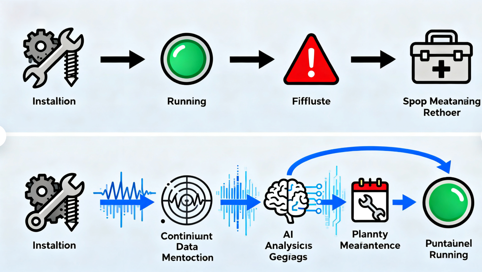 캡션: 유지 관리 모델의 진화: 수동적인 오류 대응에서 사전 예방적인 데이터 기반 예측 개입으로 시스템 신뢰성을 크게 향상시킵니다.